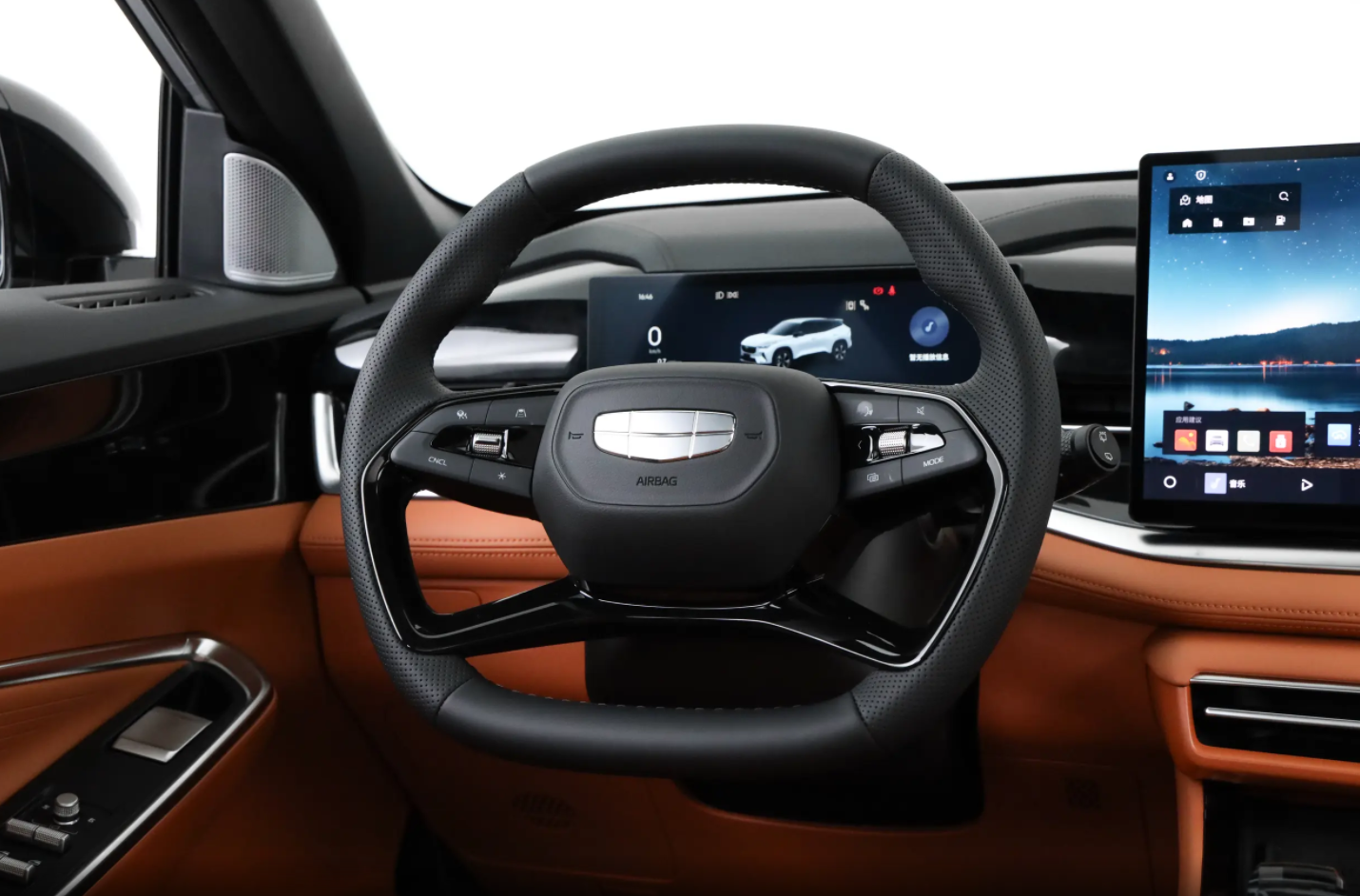 再就是这台名为“美好”的次顶配,价格上该车来到了9.99万元。相比之下,该车的主要变化集中在车内的舒适性配置和智能化配置,例如标配L2,支持主动刹车、车道保持等等。此外,车顶的天窗升级为可以开启的全景天窗,同时方向盘更换为皮质包覆,仪表盘也升级为全液晶规格,再加上前排座椅加热和自适应远近光灯,这些同样可以带来不错的体验感。另外值得一提的是,新吉利博越(美好)还在前者新增前排安全气囊的基础上,增配了侧安全气帘,同时还有胎压显示系统。