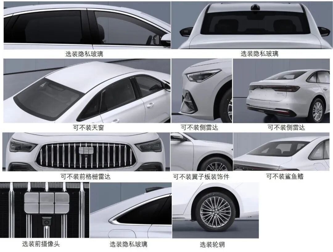 新车的外观设计几乎就是星耀6的放大版,前脸非常AM吉,梯形前格栅内部加入了直瀑式镀铬饰条点缀,狭长的前大灯、前包围两侧夸张的进气口带来了不错的运动气息,把车标换成三叉星一点都不违和,侧面采用的传统机械门把手要给好评,尾部则采用了贯穿灯带,其长宽高分别为4958/1915/1505mm,轴距为2852mm。动力方面,新车将搭载1.5L插混系统,其发动机最大功率为82千瓦,采用全新一代雷神AI电混2.0技术,电机的最大功率为120千瓦,纯电续航里程分为60公里和125公里两个版本,智能化方面,内饰预计采用Flyme Auto智能座舱,辅助驾驶方面有望搭载千里浩瀚辅助驾驶H3方案,支持高速领航辅助。