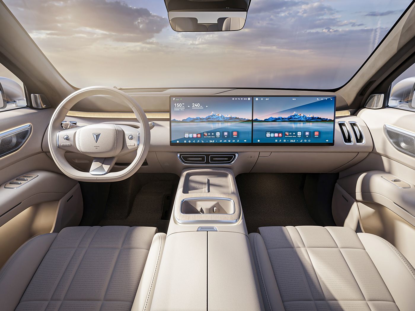 同样先说优点,深蓝S09最大的优势恰恰就是银河M9的短板所在,比如它起步就提供了220km的纯电续航能力、华为的驾驶辅助系统(低配无激光雷达)加持,而且在功能配置方面基本上就给你配齐,就算是入门版本,像车内的中控联屏、后排娱乐屏等都给你安排上了。