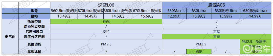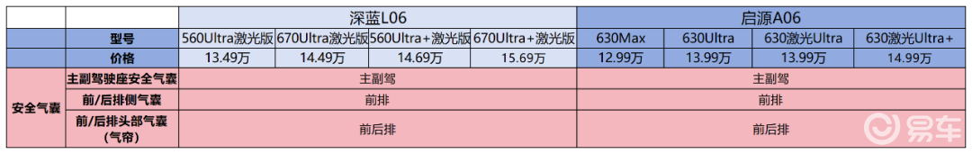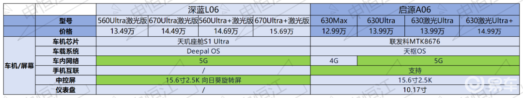 启源A06价格10.99-14.99万元,深蓝L06价格13.49-15.69万元。