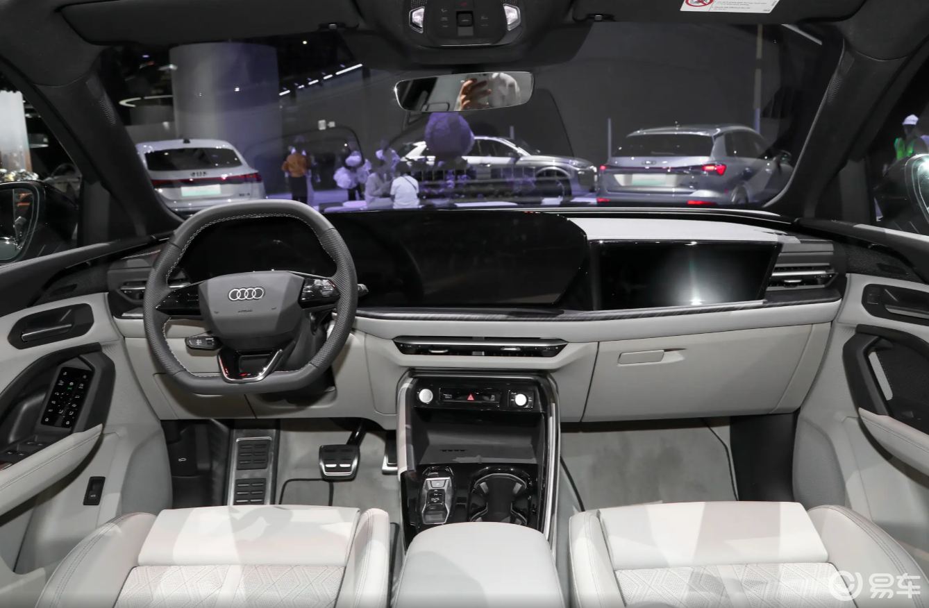 内饰这块的话,奥迪终于把那个用了好几年的悬浮屏给扔了。换上了11.9英寸仪表+14.5英寸中控的曲面双联屏,副驾还给塞了个10.9英寸的娱乐屏。