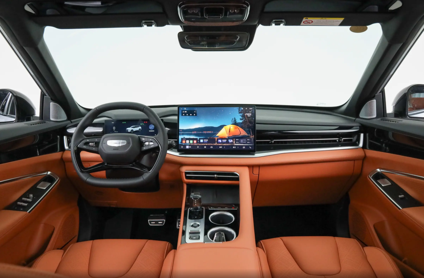 再就是这台名为“美好”的次顶配,价格上该车来到了9.99万元。相比之下,该车的主要变化集中在车内的舒适性配置和智能化配置,例如标配L2,支持主动刹车、车道保持等等。此外,车顶的天窗升级为可以开启的全景天窗,同时方向盘更换为皮质包覆,仪表盘也升级为全液晶规格,再加上前排座椅加热和自适应远近光灯,这些同样可以带来不错的体验感。另外值得一提的是,新吉利博越(美好)还在前者新增前排安全气囊的基础上,增配了侧安全气帘,同时还有胎压显示系统。