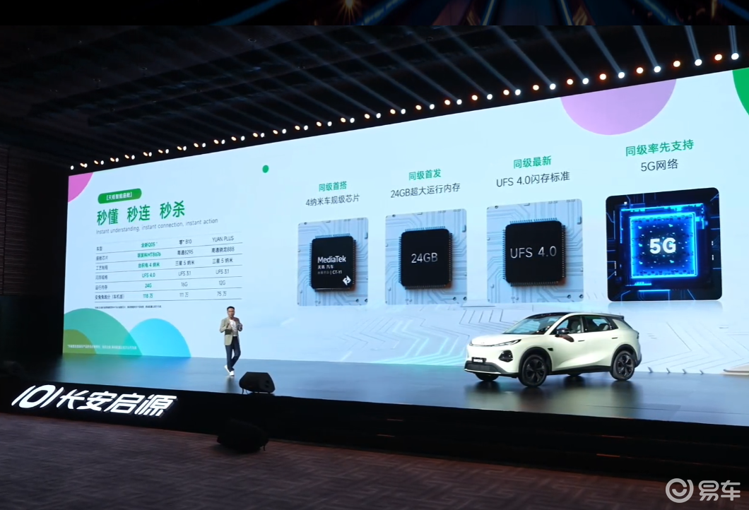 车内搭载10.17英寸液晶仪表、15.6英寸中控屏,同级首发新一代4nm座舱芯片,并拥有24G运行内存、UFS4.0内存标准、5G网络,确保操作运行流畅。此外还支持无麦K歌,提升了用车乐趣。