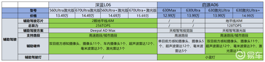 启源A06价格10.99-14.99万元,深蓝L06价格13.49-15.69万元。