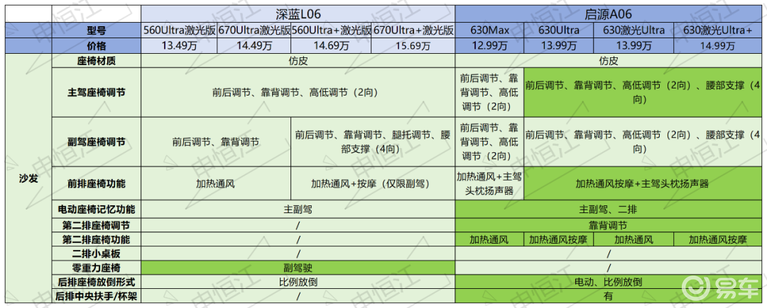 以上就是启源A06个深蓝L06的配置对比情况,吐槽有些多,最后进行总结: