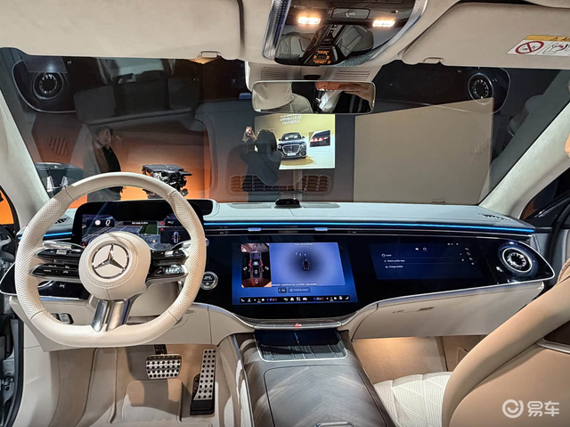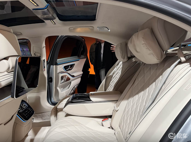 内饰方面,新款奔驰S级的变化非常大,搭载了12.3英寸液晶仪表+14.4英寸+12.3英寸副驾娱乐屏,车机系统为MBUX智能交互系统,集成了ChatGpt4o、微软必应、谷歌Gemini等AI技术,后排还配备了两个带高清摄像头的13.1英寸显示屏和两个可拆卸MBUX遥控器,整体科技感较为出色。