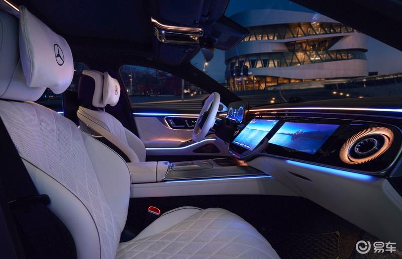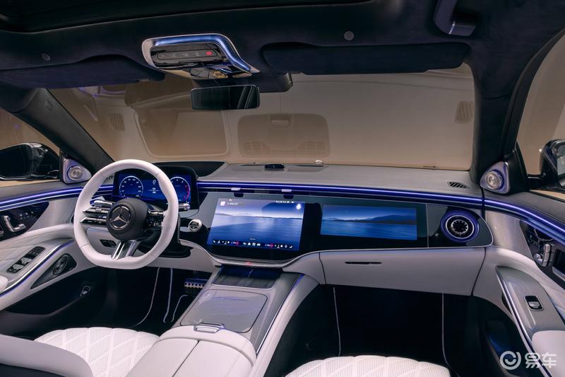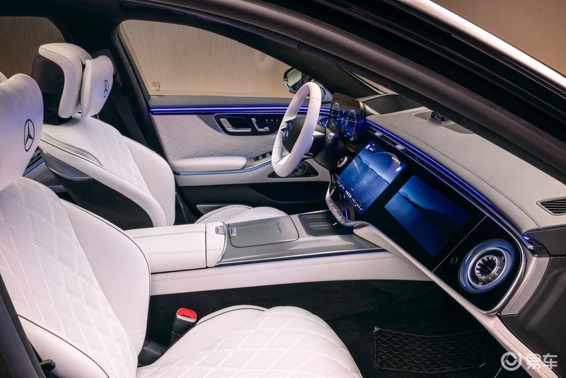前大灯首次采用“双星徽”造型,与两侧各有3枚镀铬边框星徽的尾灯前后呼应,当驾驶者靠近车辆时,灯组即刻闪耀致意,辅以侧裙投射于地的“Mercedes-Benz”迎宾光毯,科技感十足。值得一提的是,新一代智能数字大灯搭载行业前沿的micro-LED技术与全新高性能芯片,在能耗降低约50%、重量减轻超25%的同时,将高分辨率照明范围扩展了约40%,弯道照明更精准。