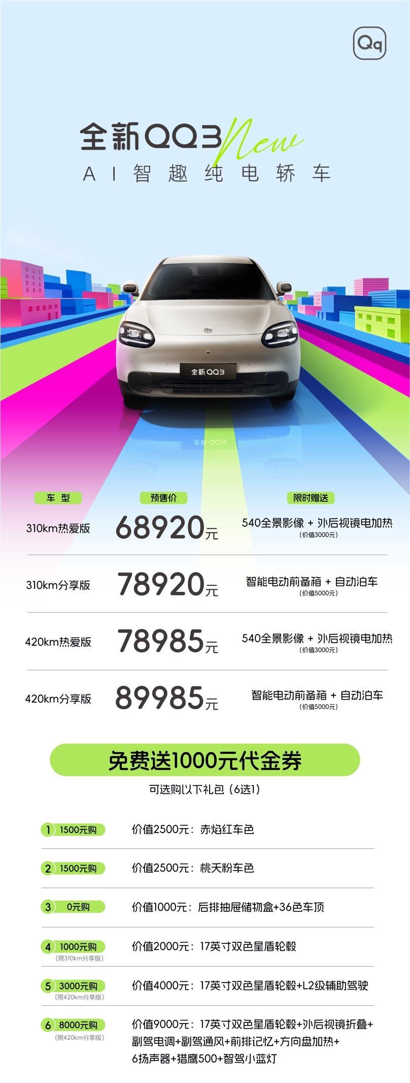 奇瑞全新QQ3正式开启预售,新车定位A0级纯电小车