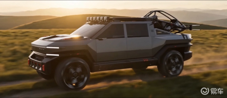 MONTX P10披覆冷峻的“战机灰”涂装,保险杠与引擎盖注入铠甲般的强化纹理,车顶“雨林线”如拓荒者触角、车斗搭载的载人飞行器,以裸露碳纤维骨架与硬朗车身共振,演绎“重与轻”、“地与空”的野性浪漫与科技感。